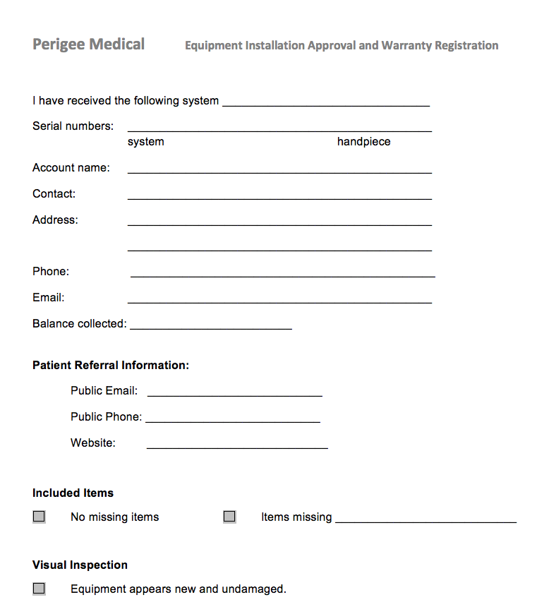 Please download this Customer acceptance and warranty registration form (PDF) and have your customer sign and submit the form to us or return it to you.